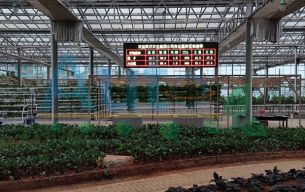 該LED屏安裝在園區的主通道,園區各個溫室的工作人員,隨時可以通過LED屏了解各自溫室的實時環境數據。它作為了園區現代化管理手段的一個重要工具。