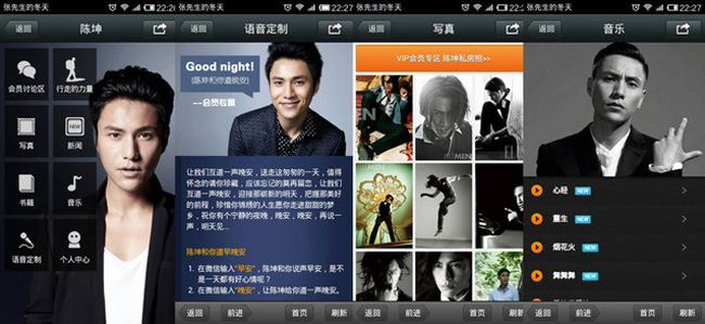 玩微信的小伙伴都知道,陳坤的微信訂閱號(hào)別有一番風(fēng)味。跟其他明星的微信不同,陳坤的微信已經(jīng)升級(jí)成一個(gè)個(gè)人站點(diǎn)。微信公眾平臺(tái)強(qiáng)大的互動(dòng)性,讓這位原本 “遙不可及”的偶像變得“觸手可及”。耳畔一句簡(jiǎn)單的“晚安”,深入人心,讓女粉絲們春心蕩漾甘愿沉淪,然后就“誠(chéng)心實(shí)意”地掏出了囊中之財(cái),造就了陳坤微信訂閱號(hào)首日入賬700萬的驚人成績(jī)。
